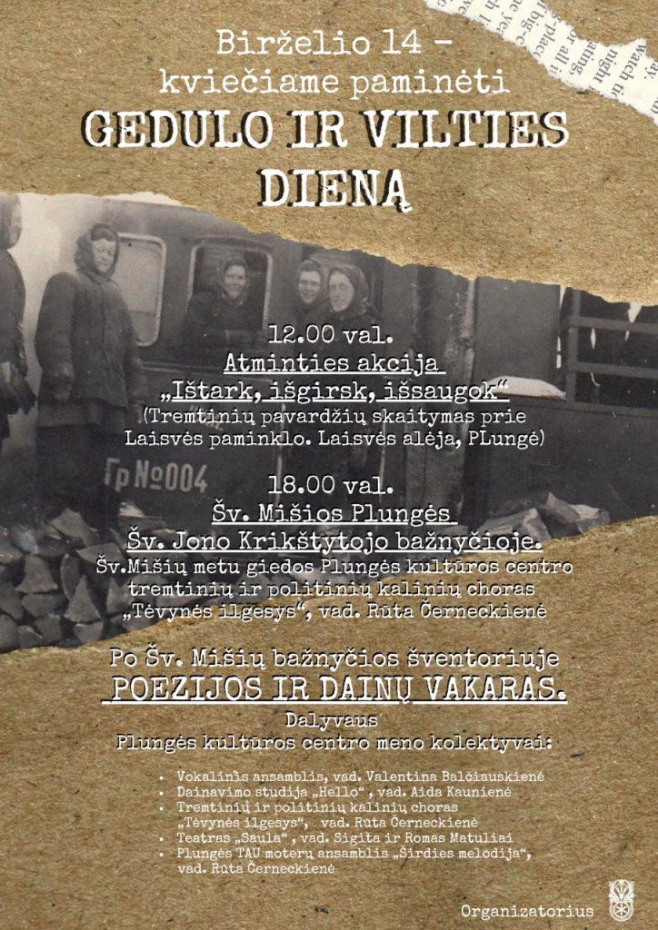Gedulo ir vilties dienai, skirti renginiai Plungėje