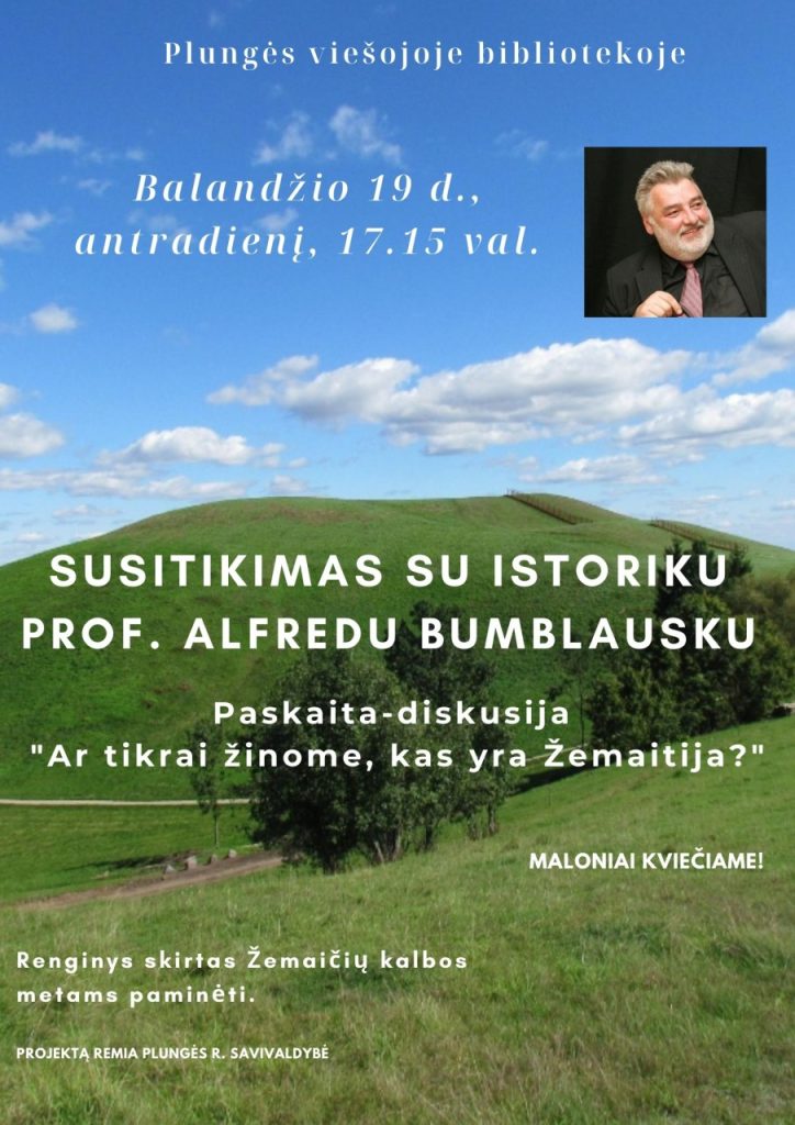 Susitikimas su istoriku prof. Alfredu Bumblausku. Paskaita – diskusija „Ar tikrai žinome, kas yra Žemaitija?”