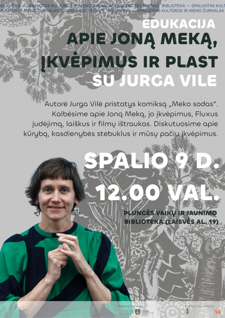 Susitikimas su rašytoja Jurga Vile | Edukacija gimnazistams „Apie Joną Meką, įkvėpimus ir plast”
