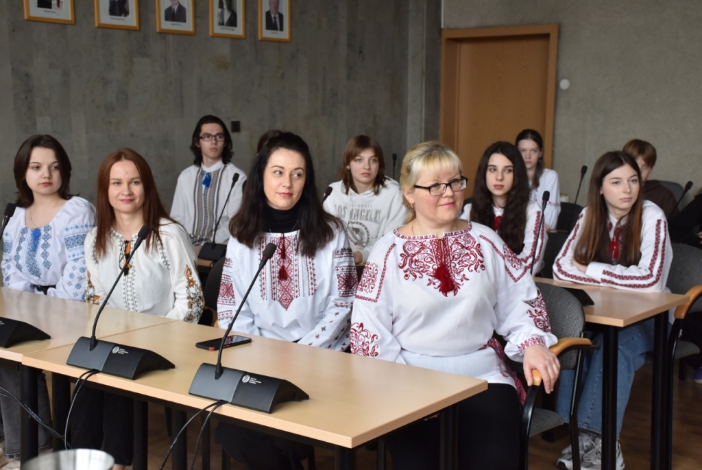 Posėdžių salėje. Latvijos ir Lietuvos vėliavėlės