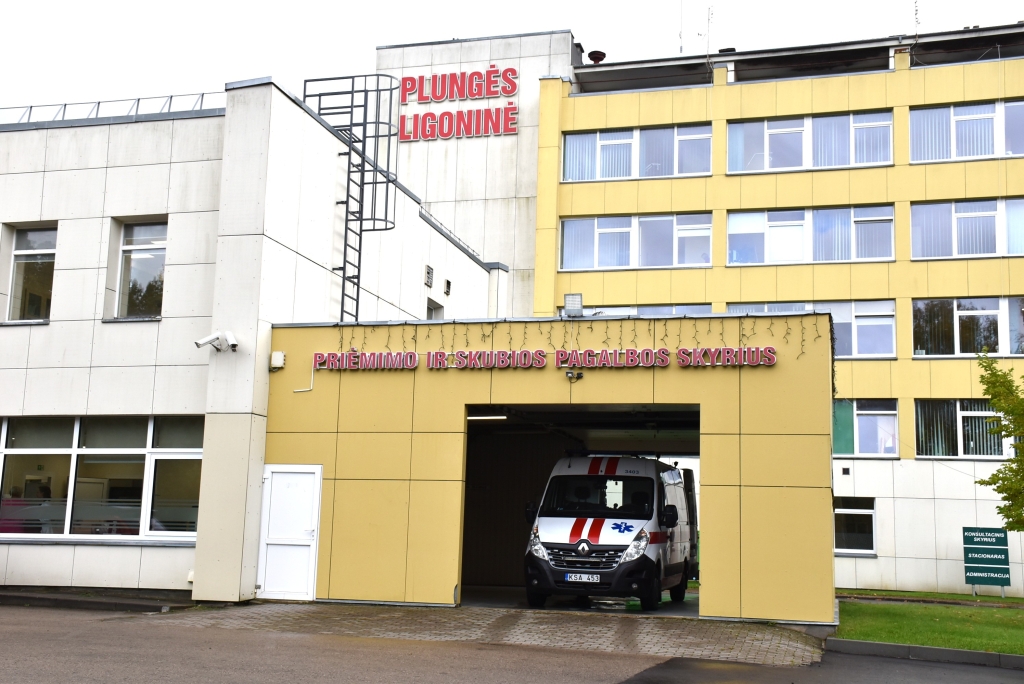 Plungės ligoninės direktorius Remigijus Mažeika (trečias iš kairės) su parodos autoriais ir organizatoriais