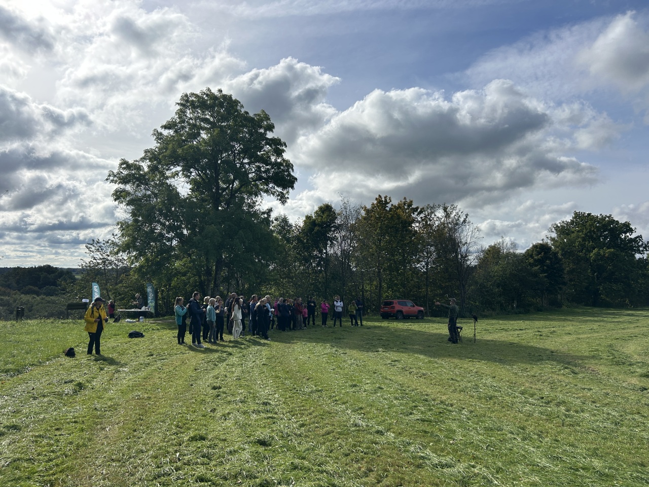 Toliau apie 10 kilometrų maršrutas vedė iki Gandingos piliakalnio. Čia žygeivius pasitiko sakalininkystės tradicijų žinovas Virginijus Narkus, kuris papasakojo apie šio amato istoriją ir šiandieninę reikšmę. Bendrystės jausmą dar labiau sustiprino ant laužo virtas medžiotojo troškinys.