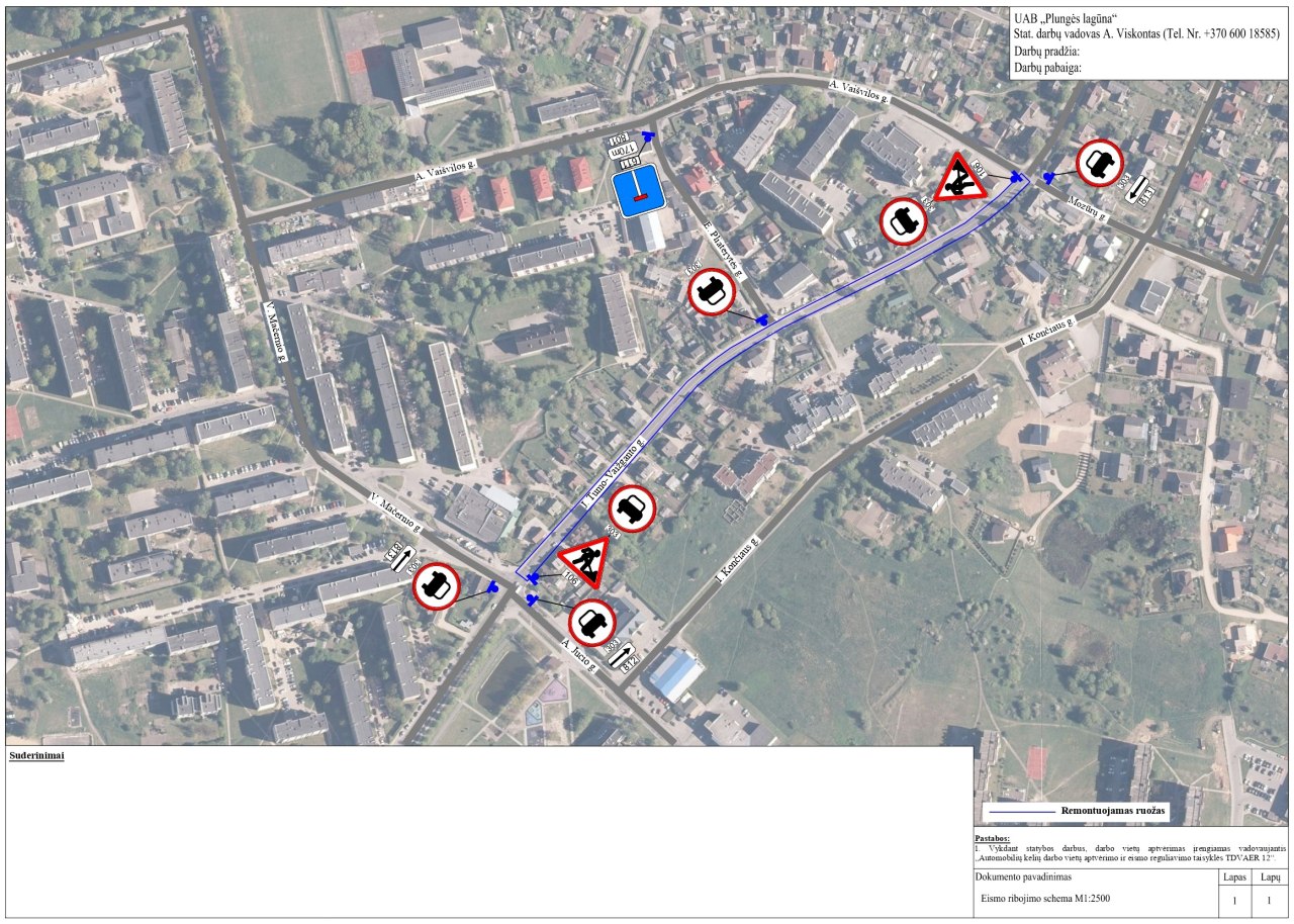 Informuojame, kad iki spalio 29 d. (trečiadienio) dalyje J. Tumo-Vaižganto gatvės, atkarpoje nuo sankryžos su A. Jucio ir V. Mačernio gatvėmis iki sankryžos su A. Vaišvilos ir Mozūrų gatvėmis, vyks asfaltavimo darbai. Kol UAB „Plungės lagūna“ darbuosis, kuriam laikui eismas minėtoje J. Tumo-Vaižganto gatvės dalyje bus ribojamas. Tad vairuotojų prašysime rinktis kitus maršrutus. Gyventojai į savo sklypus galės patekti.