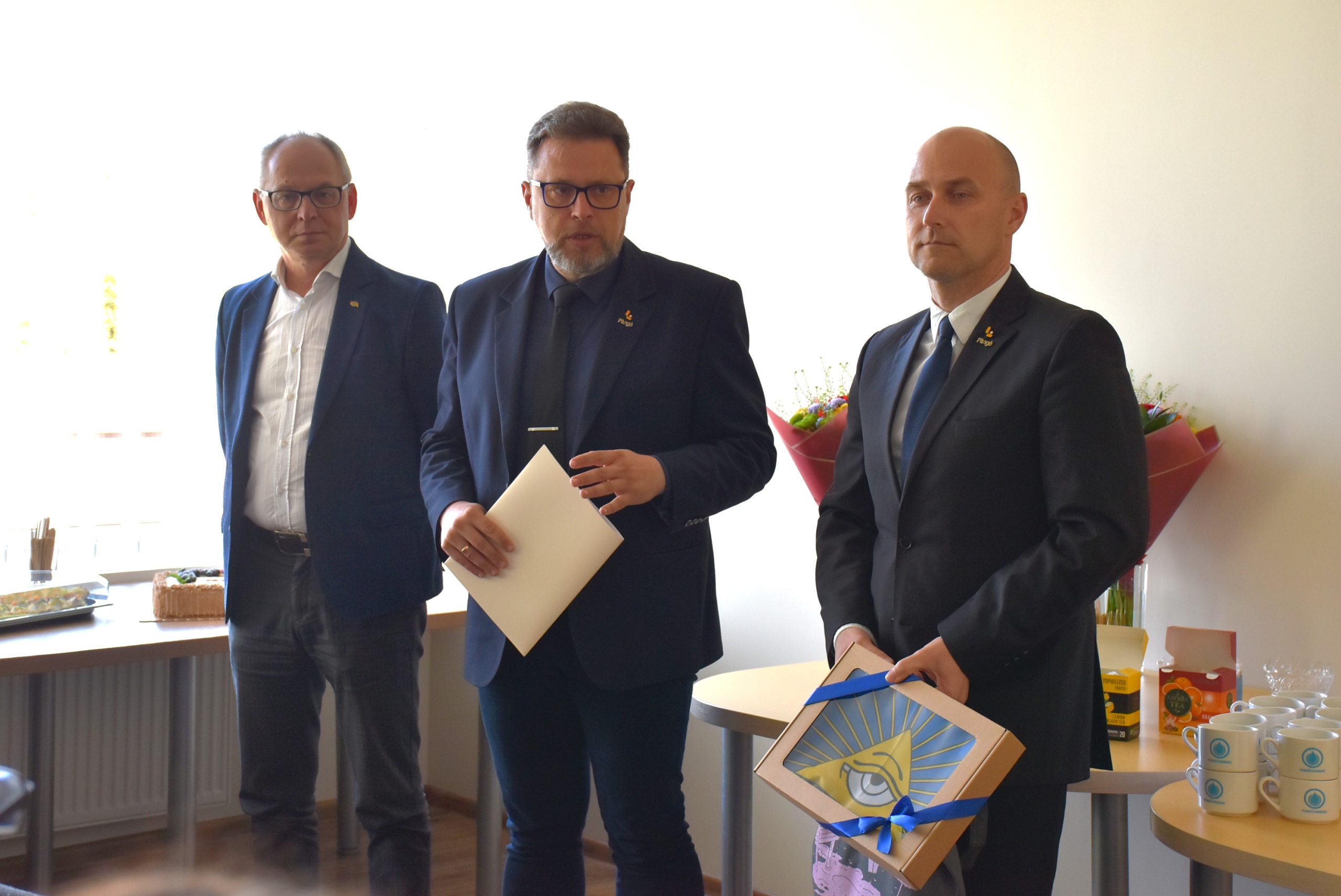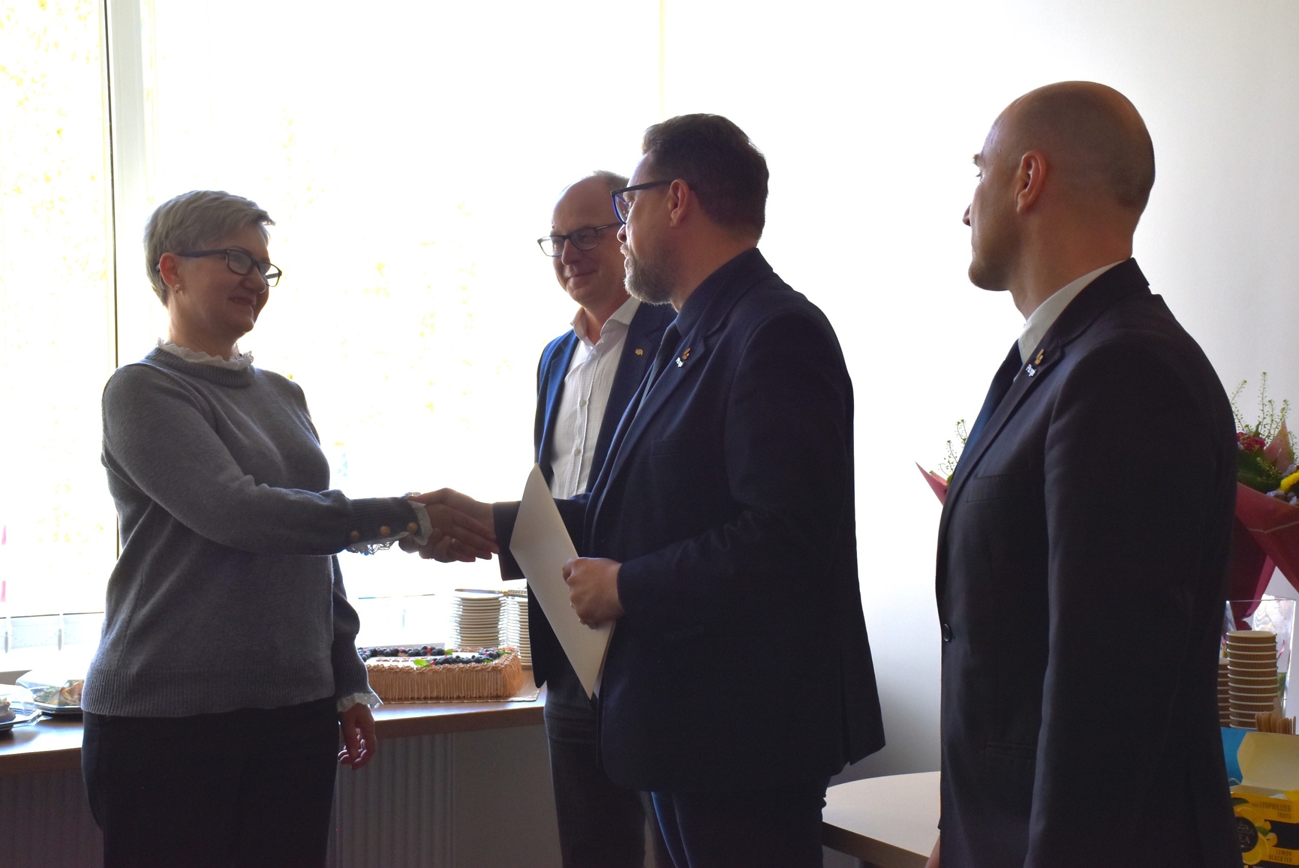 Direktorius Alvydas Jasevičius Lietuvos vandens tiekėjų asociacijos vadovo pasirašytus padėkos raštus įteikė „Plungės vandenų“ direktoriaus pavaduotojui gamybai Arvydui Jurkaičiui, vandentiekio tinklų meistrui Gintarui Riaukai ir brigadininkui šaltkalviui-remontininkui Julijonui Gedgaudui.