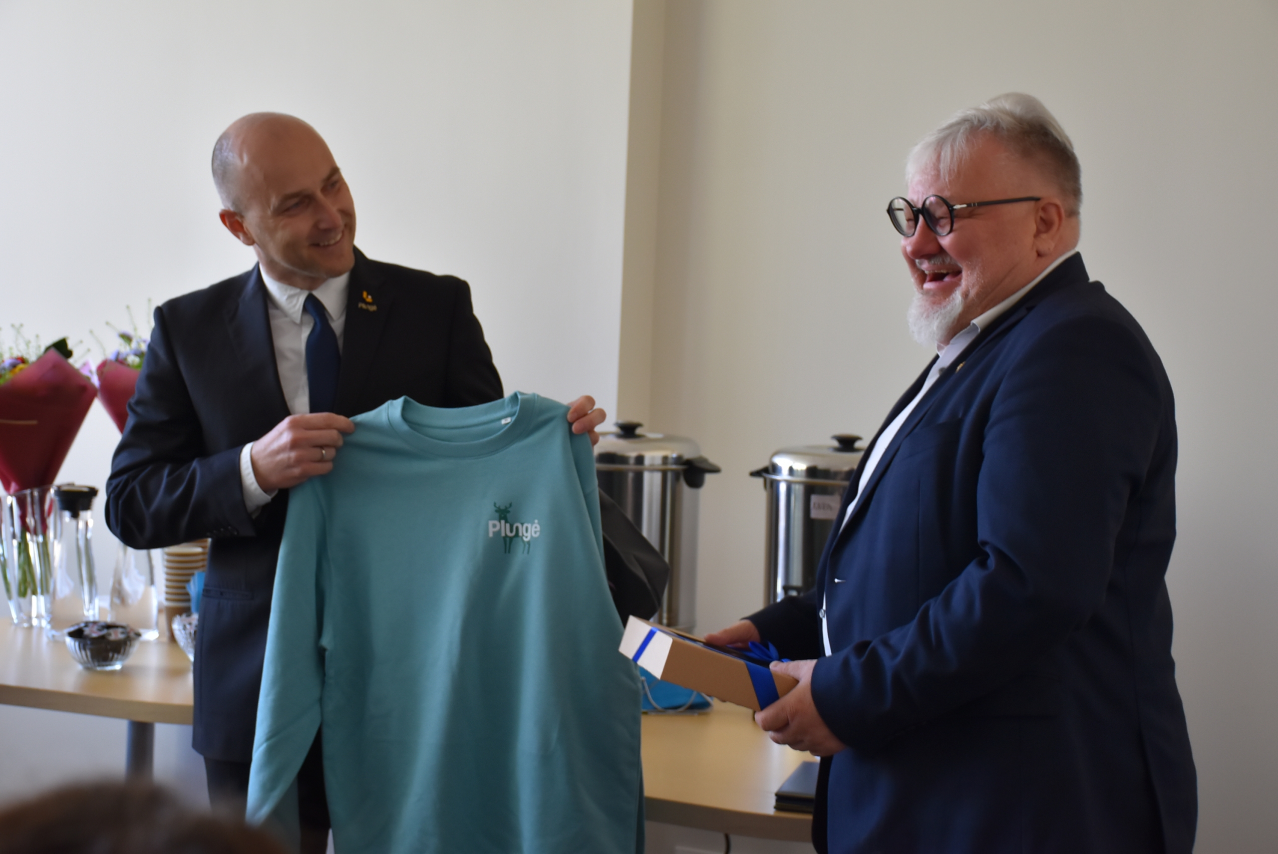 Gegužės 5-oji – Lietuvos vandentvarkos ūkio darbuotojų profesinė šventė. Ta proga UAB „Plungės vandenys“ savo darbuotojus pakvietė pasveikinimui ir puodeliui kavos. Prie „Plungės vandenų“ kolektyvo prisijungė ir Plungės rajono savivaldybės vadovai – Savivaldybės vicemeras Žydrūnas Purauskis, Savivaldybės administracijos direktorius Dalius Pečiulis, komunalines paslaugas teikiančias įmones kuruojantis Savivaldybės administracijos patarėjas Arūnas Tamošauskas.