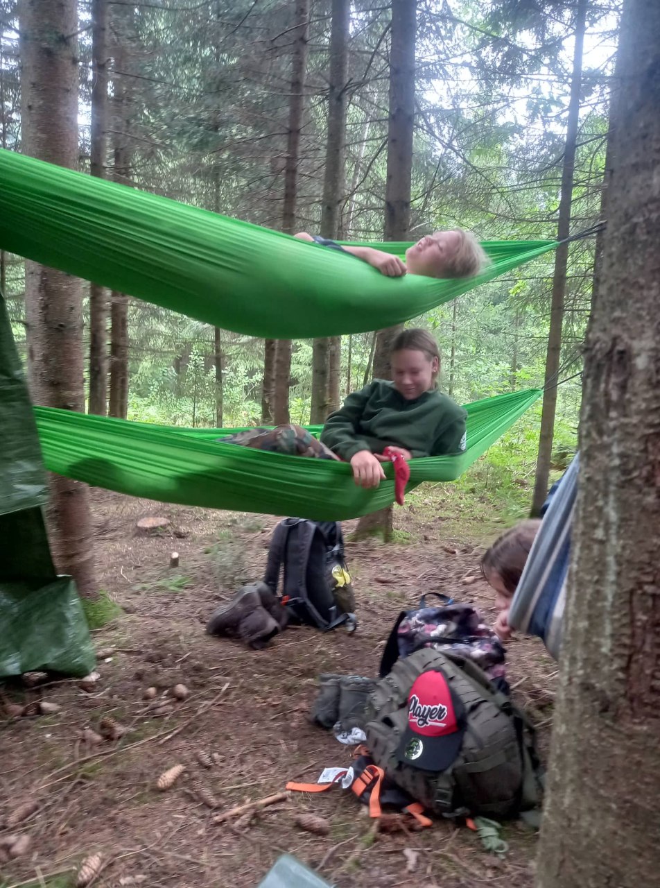 O įdomiausios buvo veiklos. Pirmoji diena tradiciškai buvo skirta įsikūrimui. Po pietų du ekipažai dar nuvažiavo į Žlibinus ir pravedė edukacijas bei patys keliose sudalyvavo. Antroji – pionerijai. Už šios srities statinius atsakingas buvo Dovydas. Viena grupė, jo vadovaujama, įrengė laiptukus su turėklu nusileisti prie tvenkinio, o kita surentė malkinę rikiuočių aikštės pakraštyje. Taip pat buvo pastatytas Žydrūno ir Giedriaus P. sukurtas kryžius. Trečiąją dieną laukė net dvi edukacijos – ryte mažiesiems futbolistams iš Plungės, popiet – skautams iš Šiaulių. Abi grupės pas mus ir pietavo, bet virtuvės šefei Ingai ir jos pagalbininkams tai nebuvo didelis iššūkis – mūsų virtuvė gali pamaitinti ir dar didesnį būrį žmonių. Po edukacijų laukė dar vienas rimtas iššūkis – susiruošti ir išeiti į paros žygį.