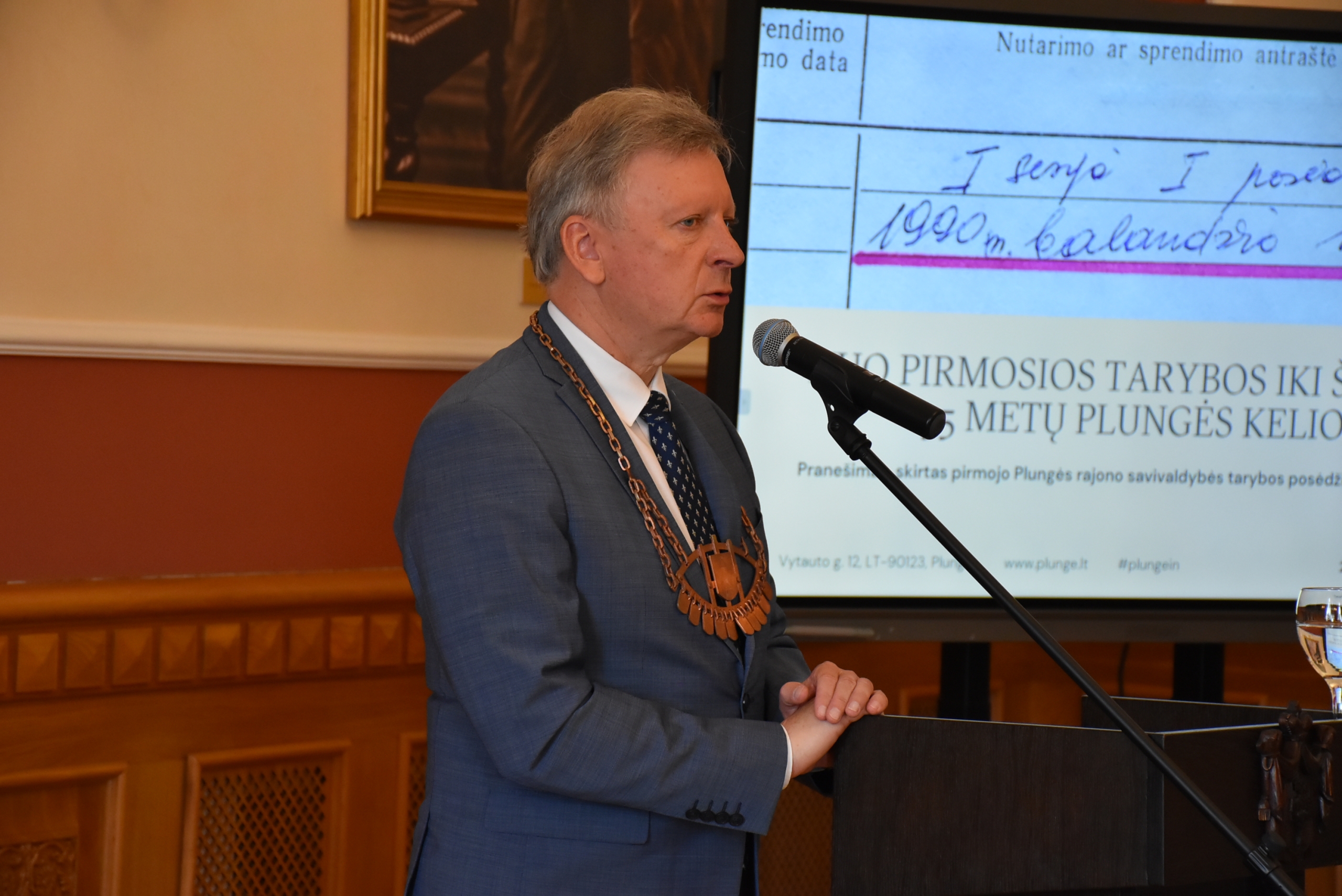 Pirmajam pranešimui į tribūną buvo pakviestas pirmasis Tarybos pirmininkas Gintaras Morkis. Jo pranešimas visus sugrąžino į 1990–1995 metus. Prisiminta Lietuvos valstybės ir savivaldos pradžia, 1991-ųjų Sausio 13-oji, Rusijos blokada – laikai, kai trūko net cukraus ir druskos. Vienas džiugiausių to laikmečio įvykių – Savivaldybės tarybos sprendimas Oginskių rūmuose įsteigti Žemaičių dailės muziejų. Antrąjį pranešimą apie tai, kaip per tuos 35 metus keitėsi Plungė ir rajonas, skaitė Savivaldybės meras Audrius Klišonis.