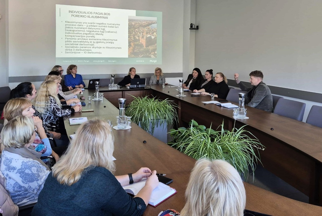 2025 m. spalio 10 d. įvyko Plungės rajono savivaldybės administracijos Socialinėms paramos skyriaus specialistų, Seniūnijose socialinį darbą dirbančių darbuotojų ir Asmens su negalia teisių apsaugos agentūros Plungės teritorinio skyriaus atstovų susitikimas. Šio susitikimo tikslas – užtikrinti, kad asmenims su negalia būtų teikiama tikslinga ir individualizuota pagalba, tobulinant vertinimo ir planavimo procesus.