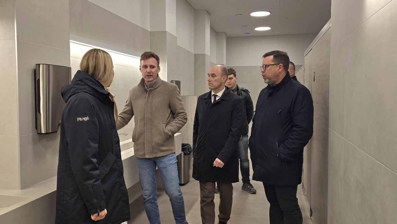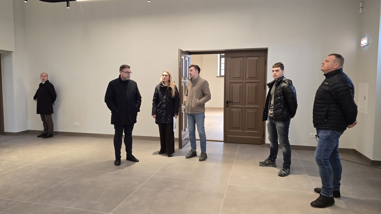 Plungės rajono savivaldybės vicemeras Žydrūnas Purauskis, Savivaldybės administracijos direktorius Dalius Pečiulis ir Vietos ūkio skyriaus vedėja Odeta Petkuvienė kartu Žemaičių dailės muziejaus direktoriumi Robertu Šimkumi ir rangovo – UAB „Pamario restauratorius“ atstovais – apžiūrėjo ir įvertino užbaigtus kunigaikščio M. Oginskio rūmų žirgyne įgyvendinto projekto „Plungės M. Oginskio dvaro sodybos pastato – žirgyno pritaikymas visuomenės kultūros reikmėms“ III etapo darbus.