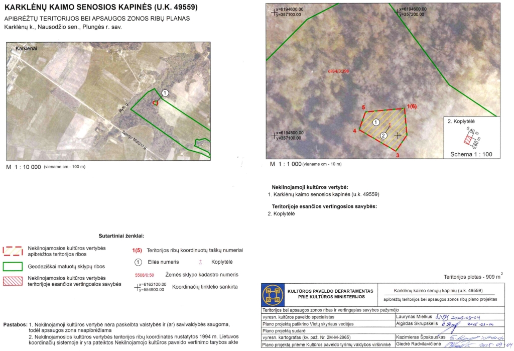 <…> 12. Karklėnų kaimo senųjų kapinių (u. k. 49559), Plungės r. sav., Nausodžio sen., Karklėnų k., nekilnojamojo kultūros paveldo vertinimo tarybos akto projektas dėl apsaugos suteikimo.
